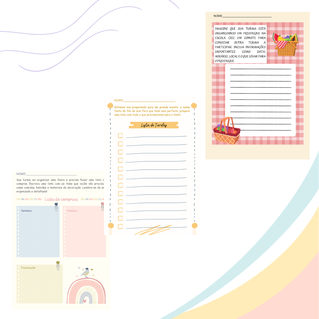 Com este kit pedagógico exclusivo, você terá em mãos uma seleção de atividades prontas para trabalhar Lista, Convite, Bilhete, Carta e muito mais!