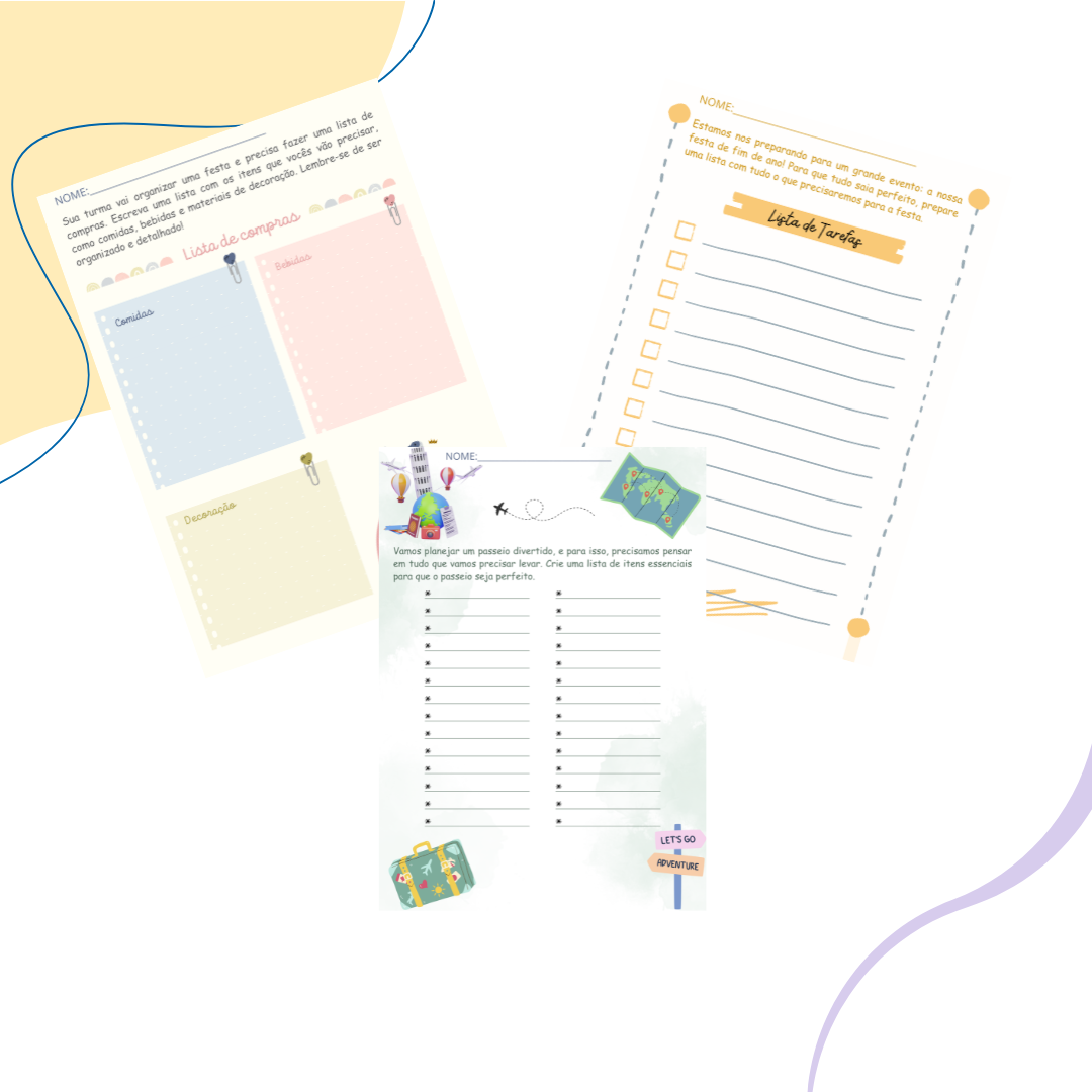 Com o Material Pedagógico – Lista, as crianças vão criar listas de compras, tarefas, objetos e muito mais, exercitando a escrita prática, a clareza e o raciocínio organizado.