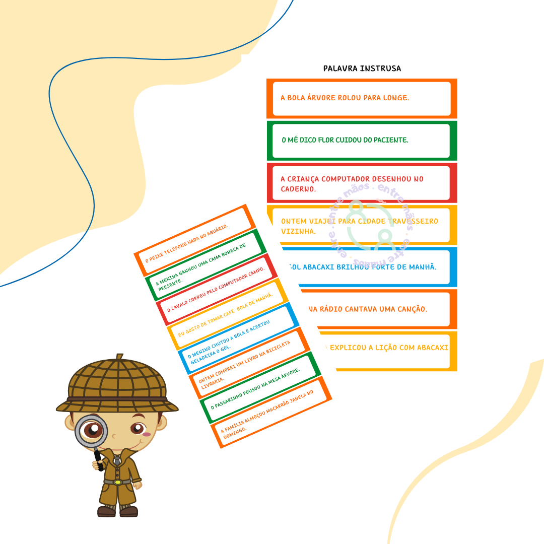 Com frases que desafiam os alunos a identificar a palavra que não faz sentido e reescrevê-las corretamente, você trabalha: